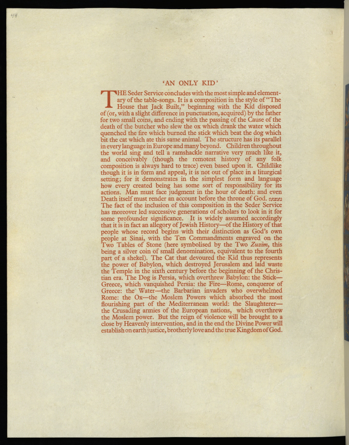 - Description: These are images of Walters Ms. 92.1349, The Szyk Haggadah, on parchment, copied by Szyk, Arthur, 1894-1951, Printed in 1940 CE