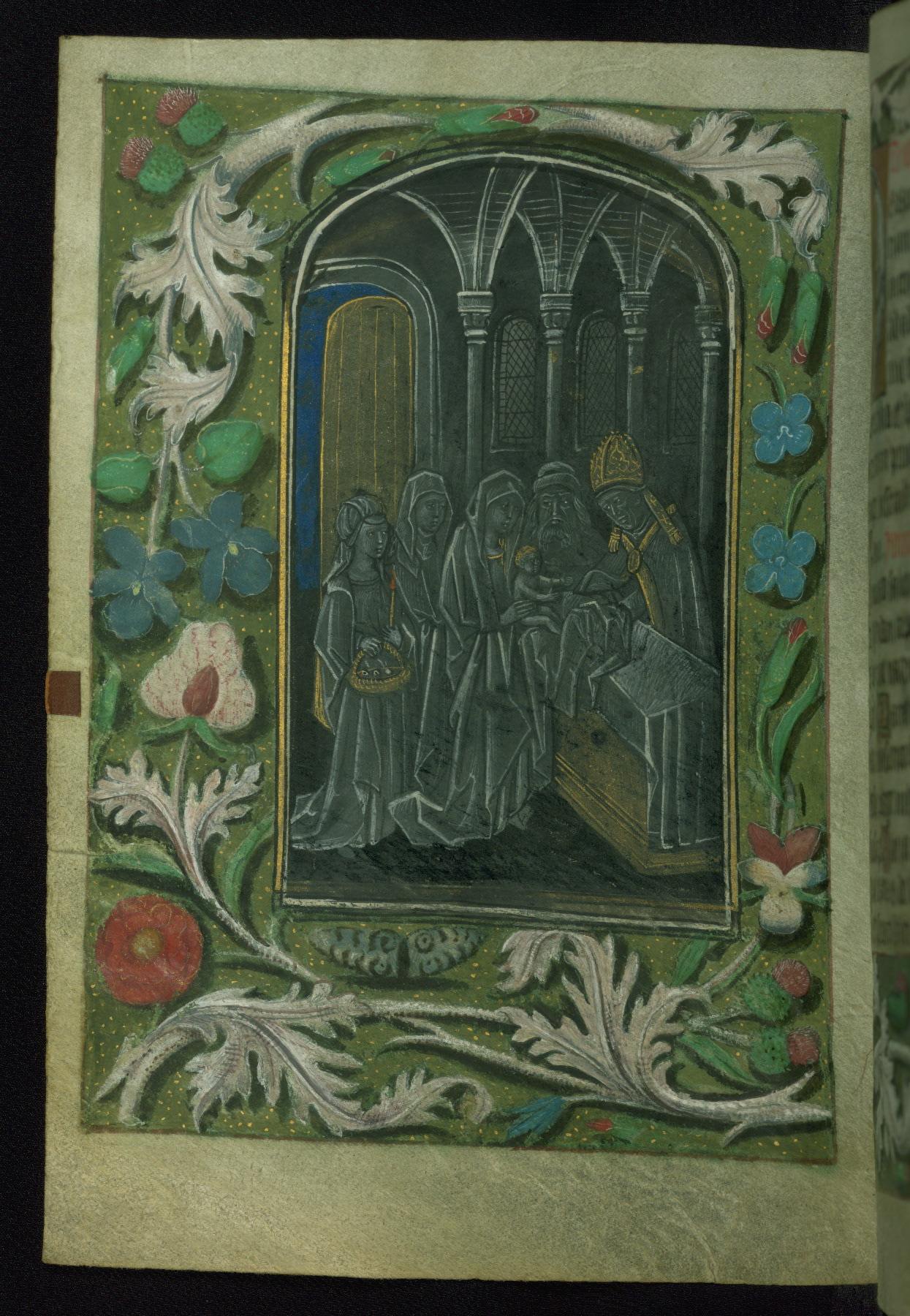 - Decoration note: Full-page grisaille miniature fol. 83v with facing foliate borders