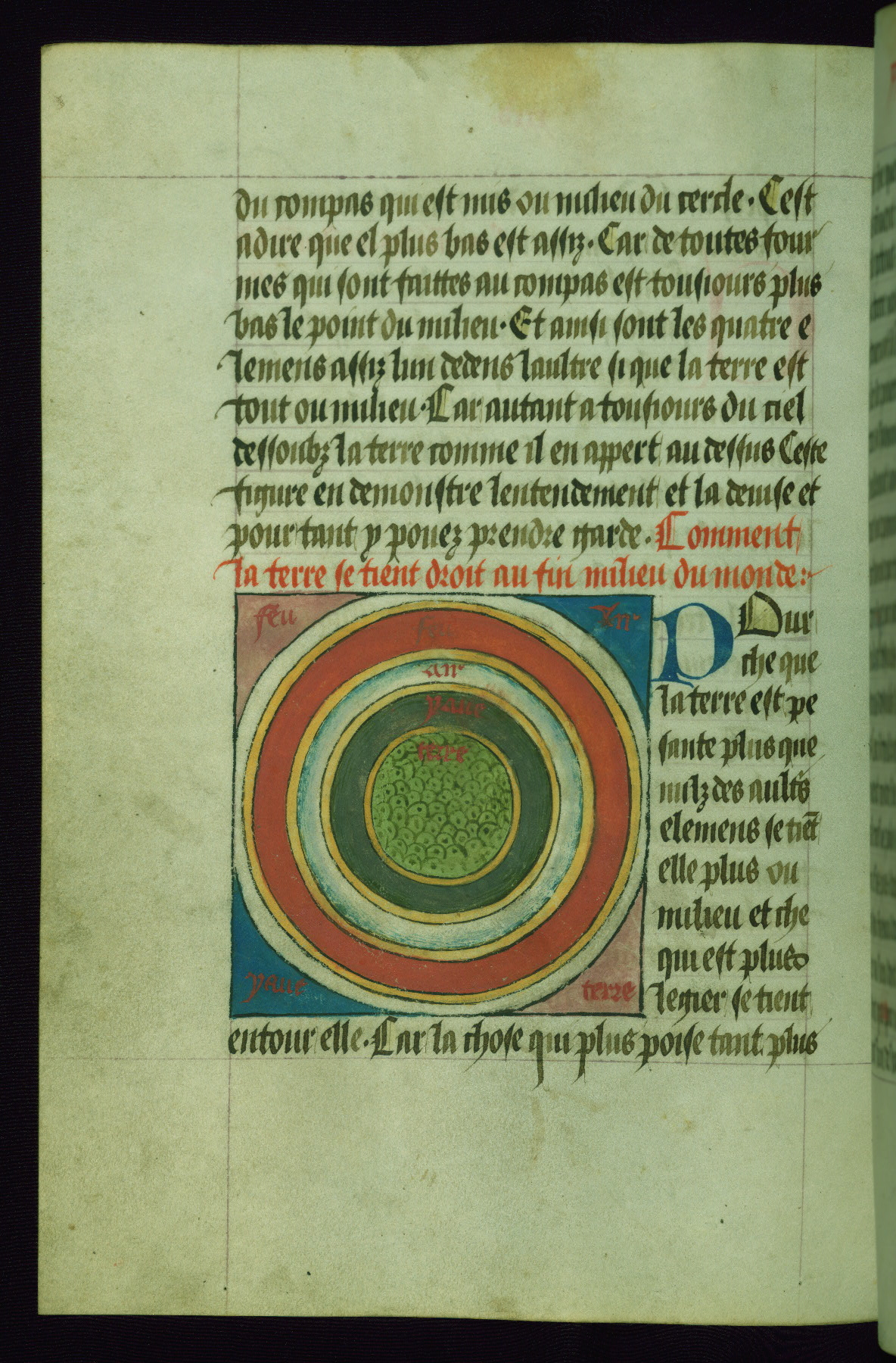 - Contents: Fol. 6r-v: Prologues of the translator: the first prologue declares that the book is a French translation entitled "ymage du monde" from the Latin text commissioned in 1245 by John, duke of Berry and Auvergne; fol. 6v explains that the organization of the text was accomplished in Bruges in 1464 ("MCCCC.lxiiii" with the second and last "C" erased, giving as apparent date "MCC.lxiiii")