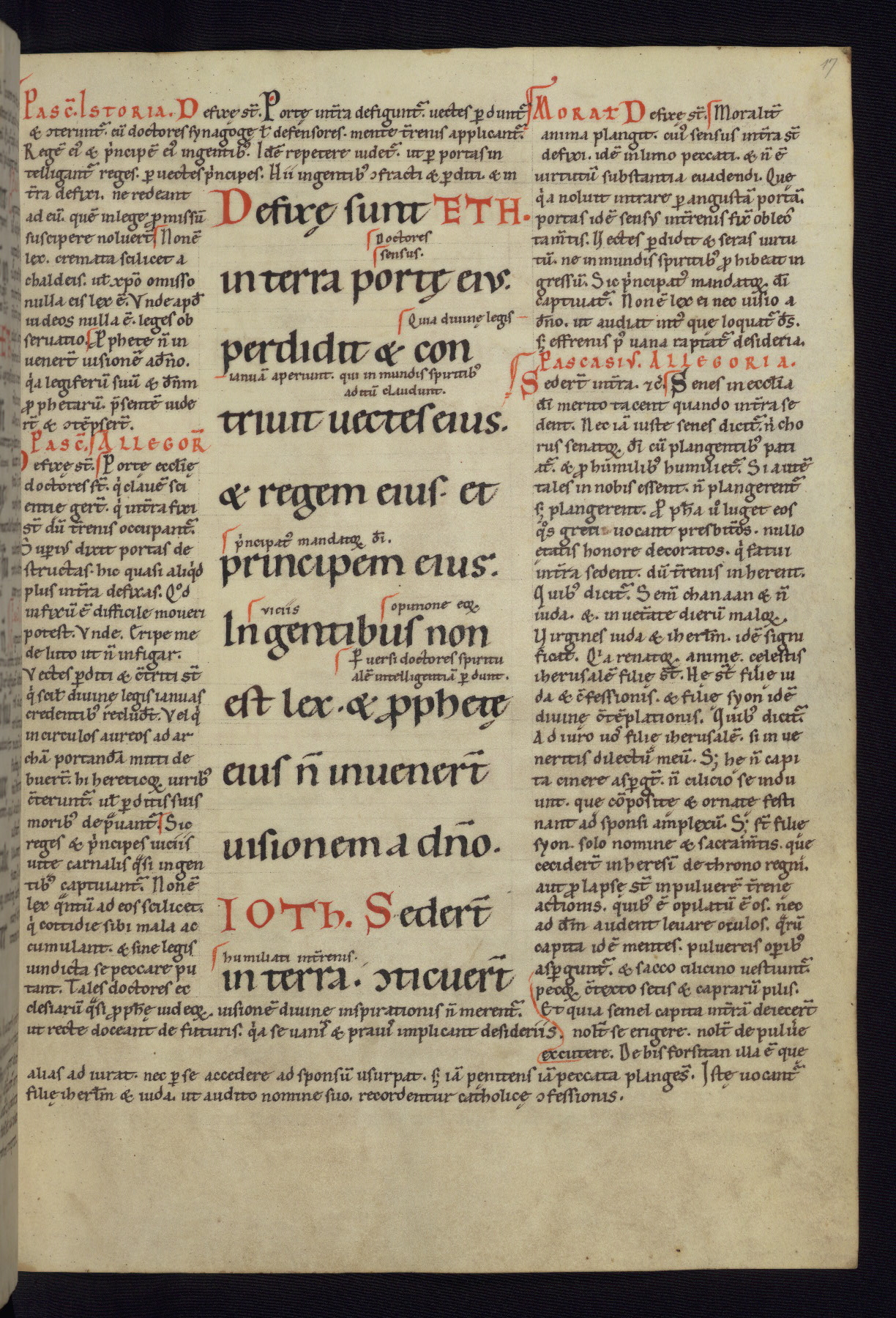 This illustrated copy of The lamentations of Jeremiah with the gloss (or interpretation) of Gilbert of Auxerre was written in Austria in the second half of the twelfth century and comes from the monastery of Seitenstetten. Gilbert died in 1134, and the manuscript is an early and important witness to his text. The gloss is written in a small script and is both interlinear and marginal. This layout is typical of glossed books of the Bible from the twelfth century. The illustrations of the sack of Jerusalem and the return to Babylon give valuable information on twelfth-century armor. The manuscript is in its original binding.
