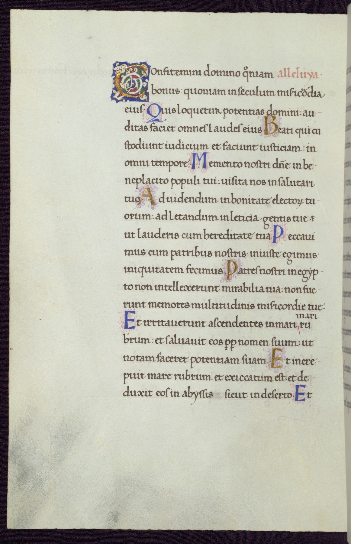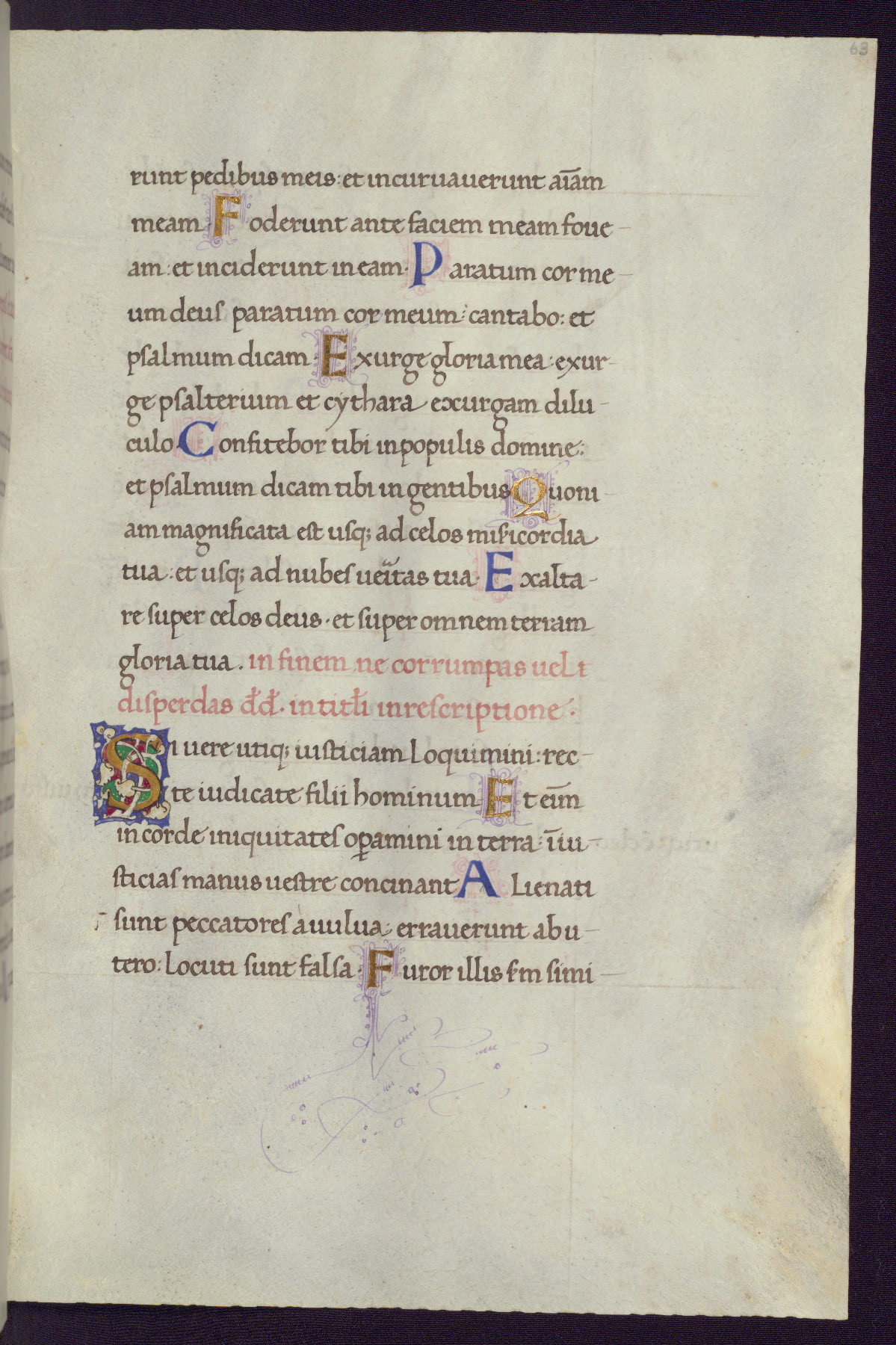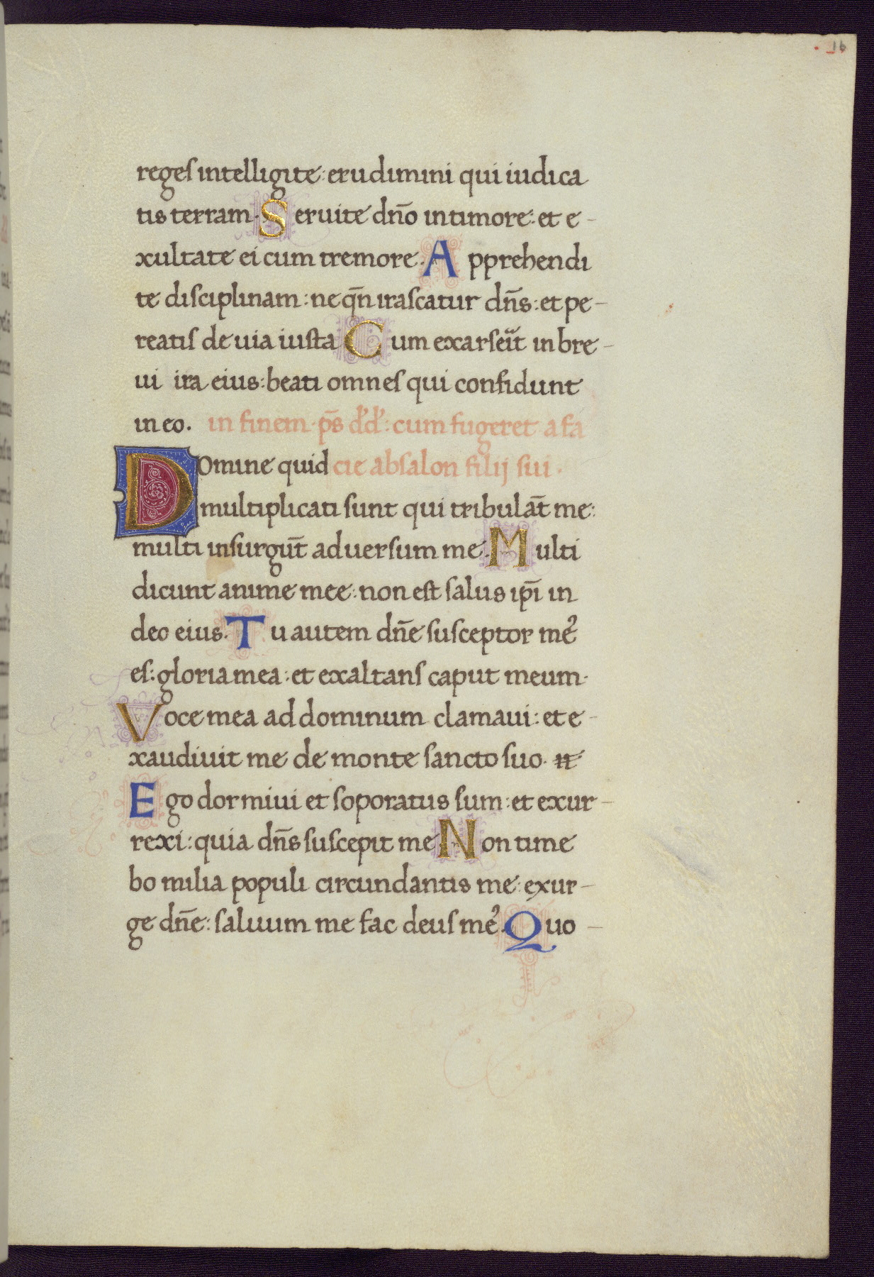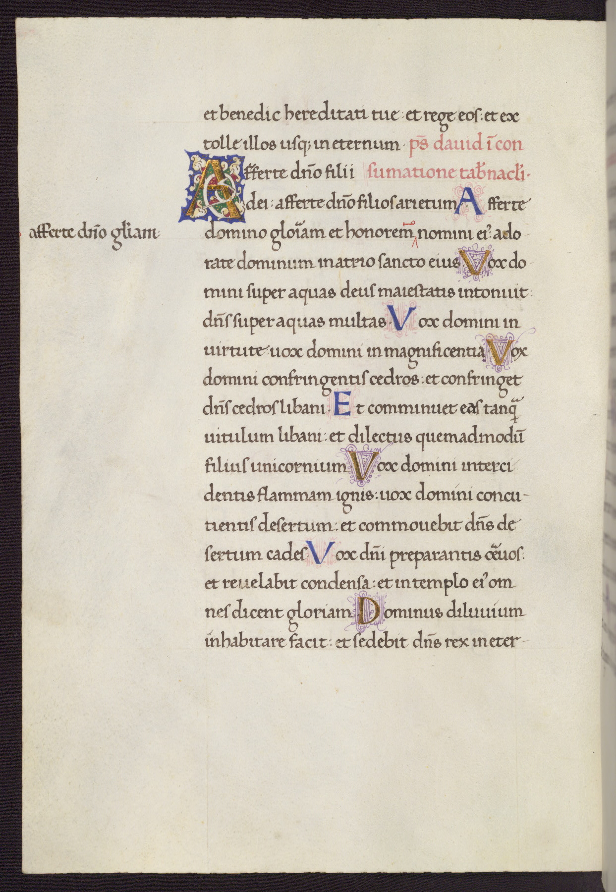 This Psalter was created in Southern Italy, likely Naples, in the last quarter of the fifteenth century. The litany (fols. 158v - 161r) suggests it was for Cistercian use. It contains six high-quality miniatures attributed to the Neopolitan illuminator Cristoforo Magorana (though the historiated initial of David playing a psaltry on fol. 15r may have been done by another hand), who from 1480-1492 worked at the court of Ferdinand I of Aragon. To date, almost forty manuscripts have been attributed to the artist. The Walters manuscript contains two full-page miniatures, one showing the Tree of Jesse and the other the Man of Sorrows. The Tree of Jesse (described in Isaiah 1:11) shows the ancestry of Christ rising from Jesse of Bethlehem, the father of King David who is depicted on the facing folio (171r). In this depiction Jesse is shown on the trunk of the tree, but it actually rises from Abraham. Surrounding Abraham is a crowd of Prophets each with scrolls with verses believed to prophecy the coming of Christ. The miniature with the Man of Sorrows shows Christ standing in his tomb and surrounded by the objects associated with the Passion (arma Christi). The miniature follows a specific Man of Sorrows iconography that originated in an early-fourteenth century mosaic icon from Constantinople that most likely arrived in Italy ca. 1380. The mosaic panel was believed to be an authentic representation of St. Gregory's vision of Christ as the Man of Sorrows, and this type of image encouraged the viewer to meditate on the suffering of Christ while reading the Passion narratives that follow. The humanist script and white-vine initials place the Walters Psalter firmly within the Humanist tradition of the late fifteenth century. Remnants of black velvet suggest this book once had a chemise binding, comparable to W.294 and W.480. Peter Kidd has suggested that the manuscript may have been written by Pietro Ursuleo of Capua (d. 1483).