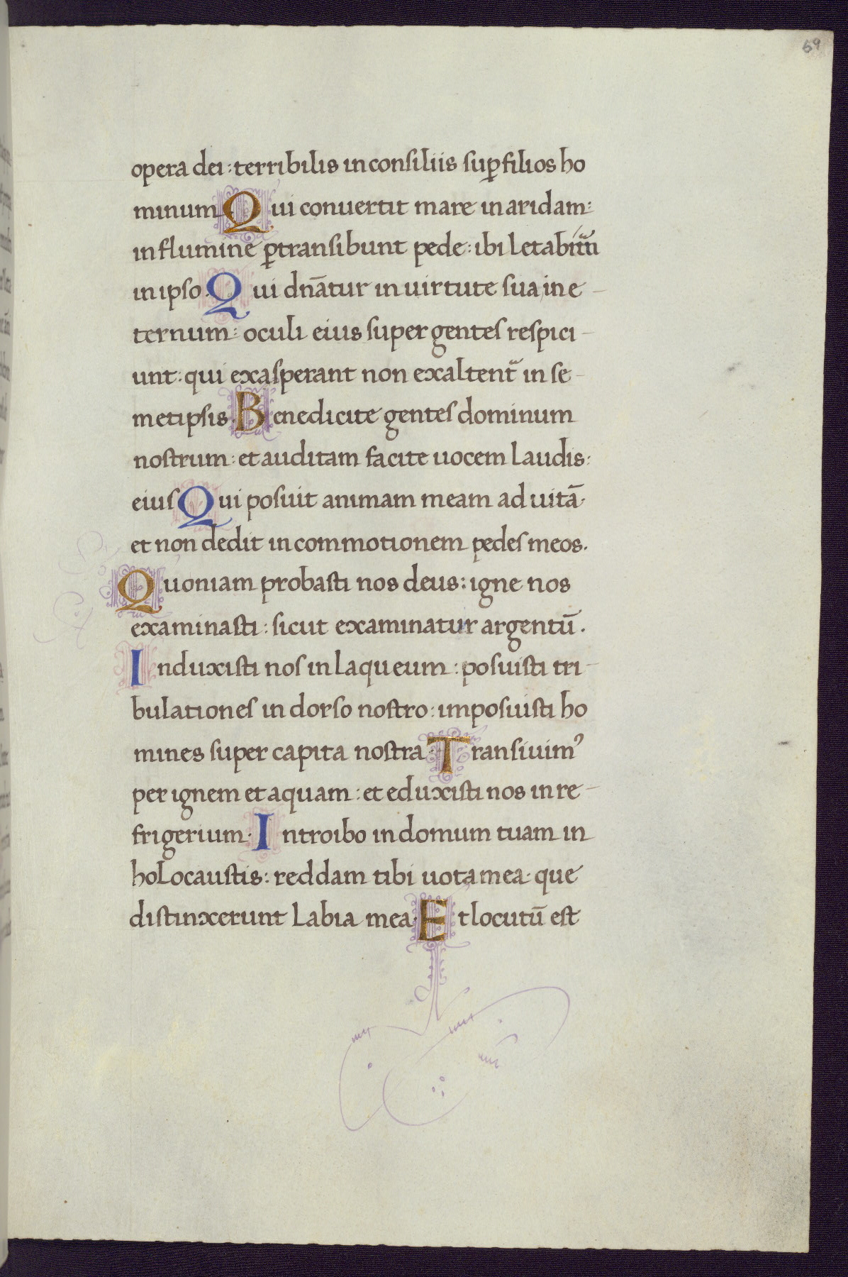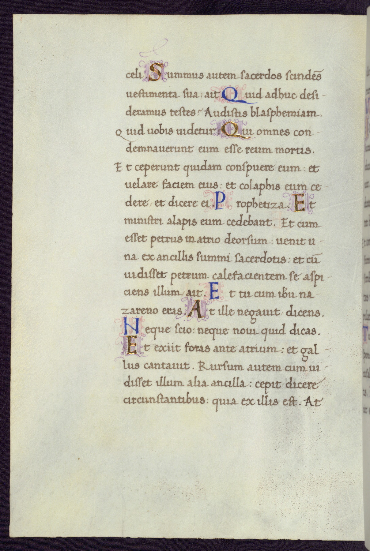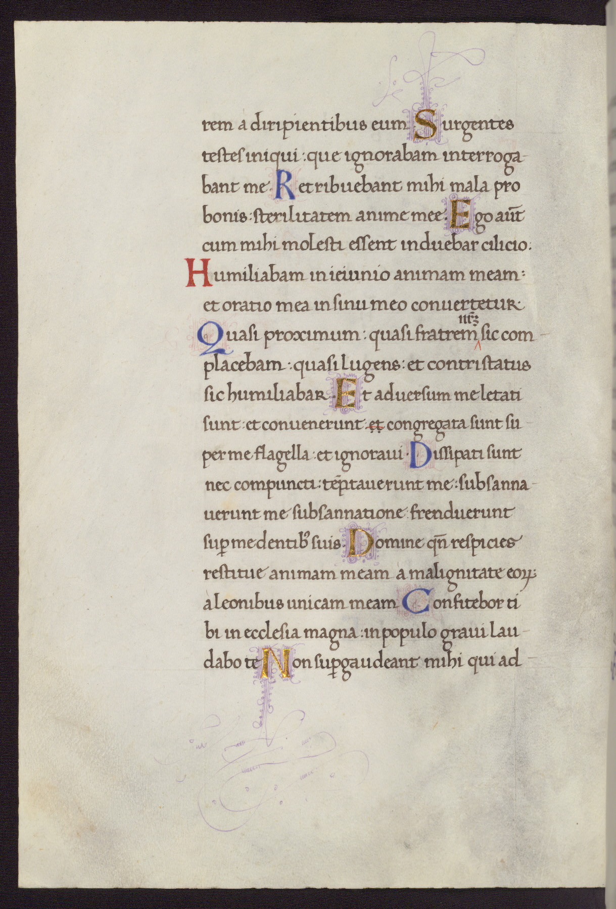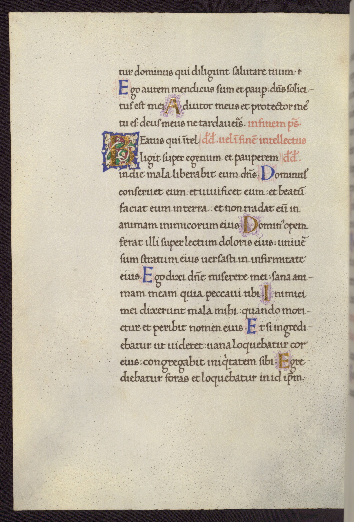 This Psalter was created in Southern Italy, likely Naples, in the last quarter of the fifteenth century. The litany (fols. 158v - 161r) suggests it was for Cistercian use. It contains six high-quality miniatures attributed to the Neopolitan illuminator Cristoforo Magorana (though the historiated initial of David playing a psaltry on fol. 15r may have been done by another hand), who from 1480-1492 worked at the court of Ferdinand I of Aragon. To date, almost forty manuscripts have been attributed to the artist. The Walters manuscript contains two full-page miniatures, one showing the Tree of Jesse and the other the Man of Sorrows. The Tree of Jesse (described in Isaiah 1:11) shows the ancestry of Christ rising from Jesse of Bethlehem, the father of King David who is depicted on the facing folio (171r). In this depiction Jesse is shown on the trunk of the tree, but it actually rises from Abraham. Surrounding Abraham is a crowd of Prophets each with scrolls with verses believed to prophecy the coming of Christ. The miniature with the Man of Sorrows shows Christ standing in his tomb and surrounded by the objects associated with the Passion (arma Christi). The miniature follows a specific Man of Sorrows iconography that originated in an early-fourteenth century mosaic icon from Constantinople that most likely arrived in Italy ca. 1380. The mosaic panel was believed to be an authentic representation of St. Gregory's vision of Christ as the Man of Sorrows, and this type of image encouraged the viewer to meditate on the suffering of Christ while reading the Passion narratives that follow. The humanist script and white-vine initials place the Walters Psalter firmly within the Humanist tradition of the late fifteenth century. Remnants of black velvet suggest this book once had a chemise binding, comparable to W.294 and W.480. Peter Kidd has suggested that the manuscript may have been written by Pietro Ursuleo of Capua (d. 1483).
