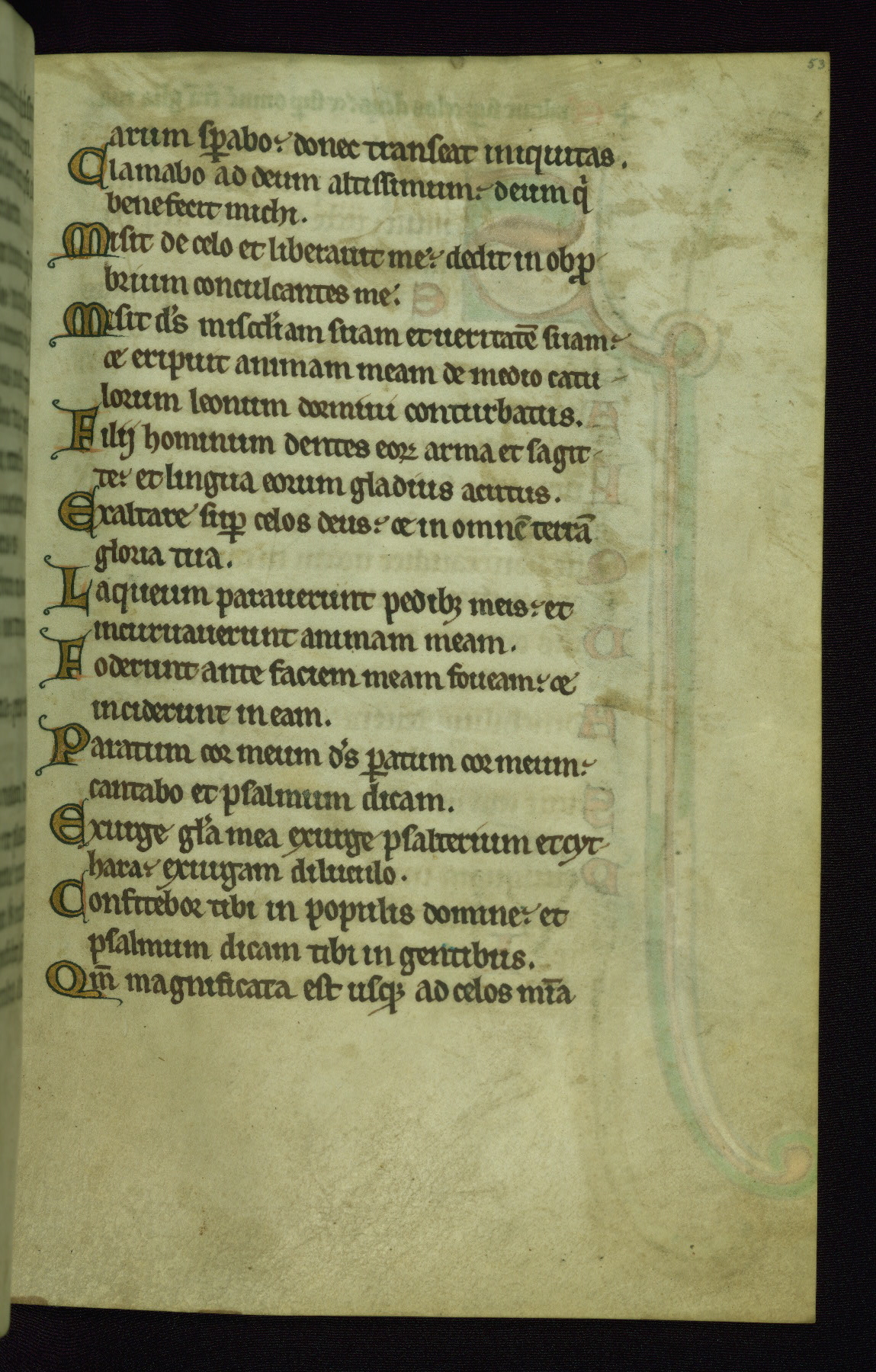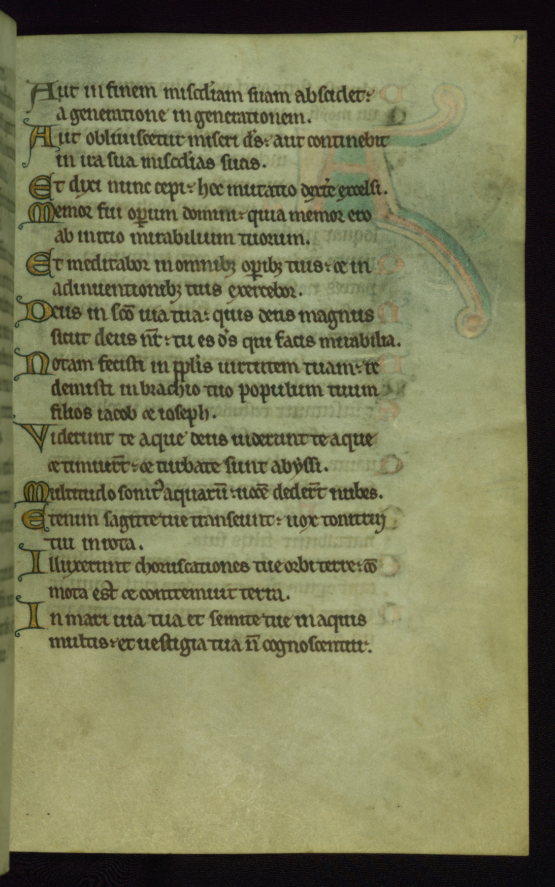 This thirteenth-century Psalter was made in Bruges for a female patron. Lively vignettes fill the calendar, while large historiated initials of saints trampling their oppressors introduce the liturgical psalms. Added Easter tables, as well as birth and death inscriptions in the calendar, attest to the manuscript's presence in England by the fifteenth century, where it was used extensively by generations of the Touke family.