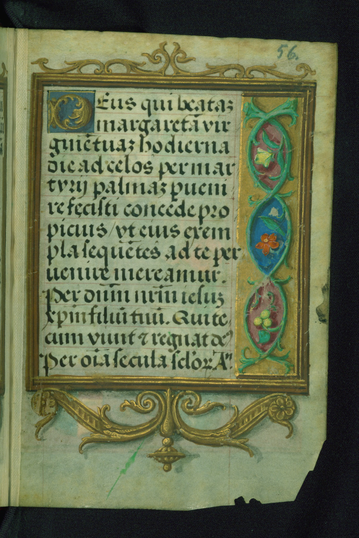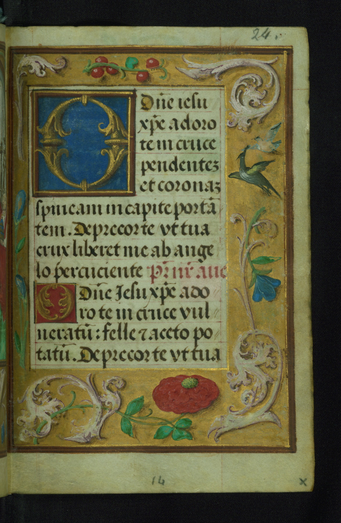 This Prayer Book was created ca. 1520-30, likely in Brussels, in the style of the Master of Charles V. It consists entirely of single folios that were added in or moved around in the book, rendering collation unfeasible. Many of intricate and high-quality miniatures were reproduced through chromolithography by Léon Gruel in his Petites Heures, published in Paris in 1875. The calendar is especially charming and features seasonally relevant illustrations, such as children having a snowball fight in December. The suffrages contain detailed and illusionistic figures, including one for St. Elizabeth of Hungary. The contents of the calendar suggest a Franciscan affinity.