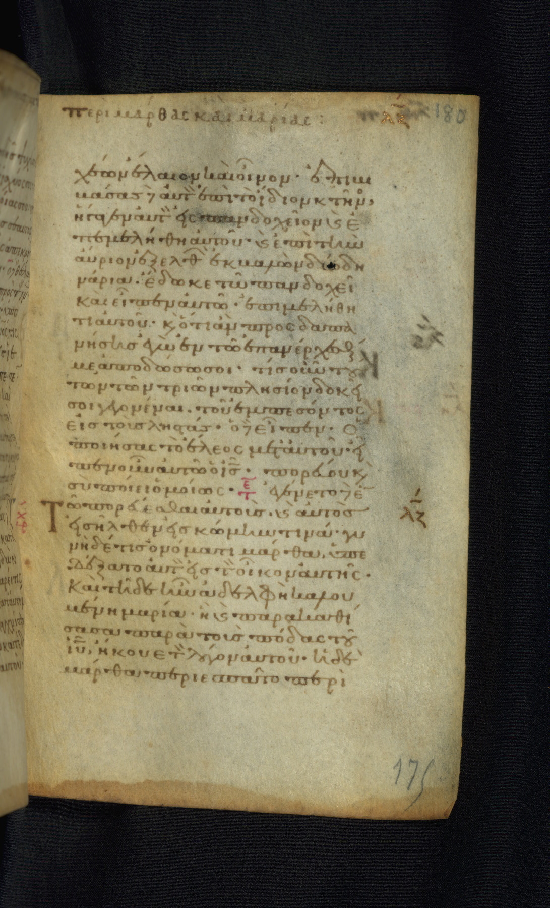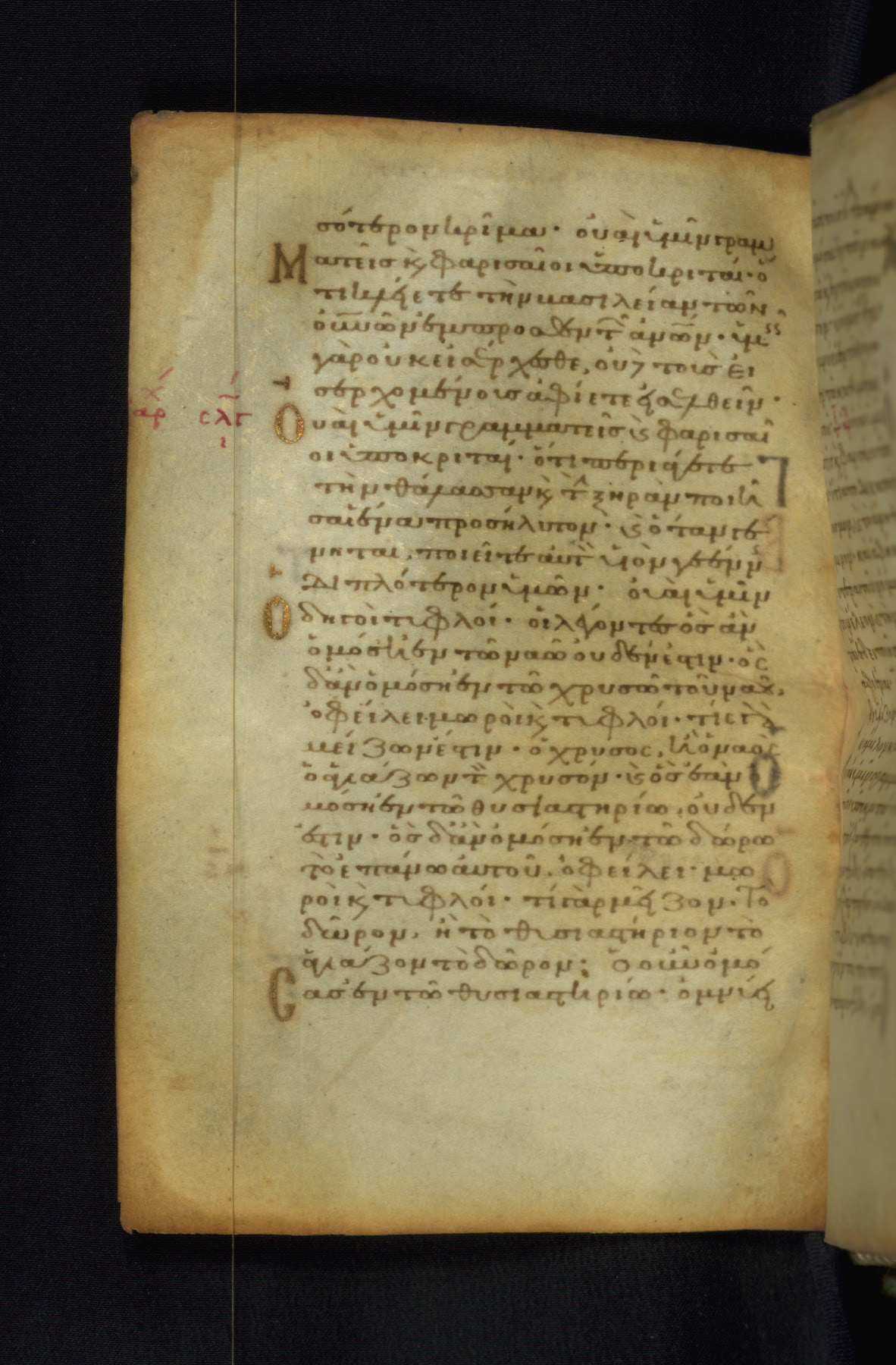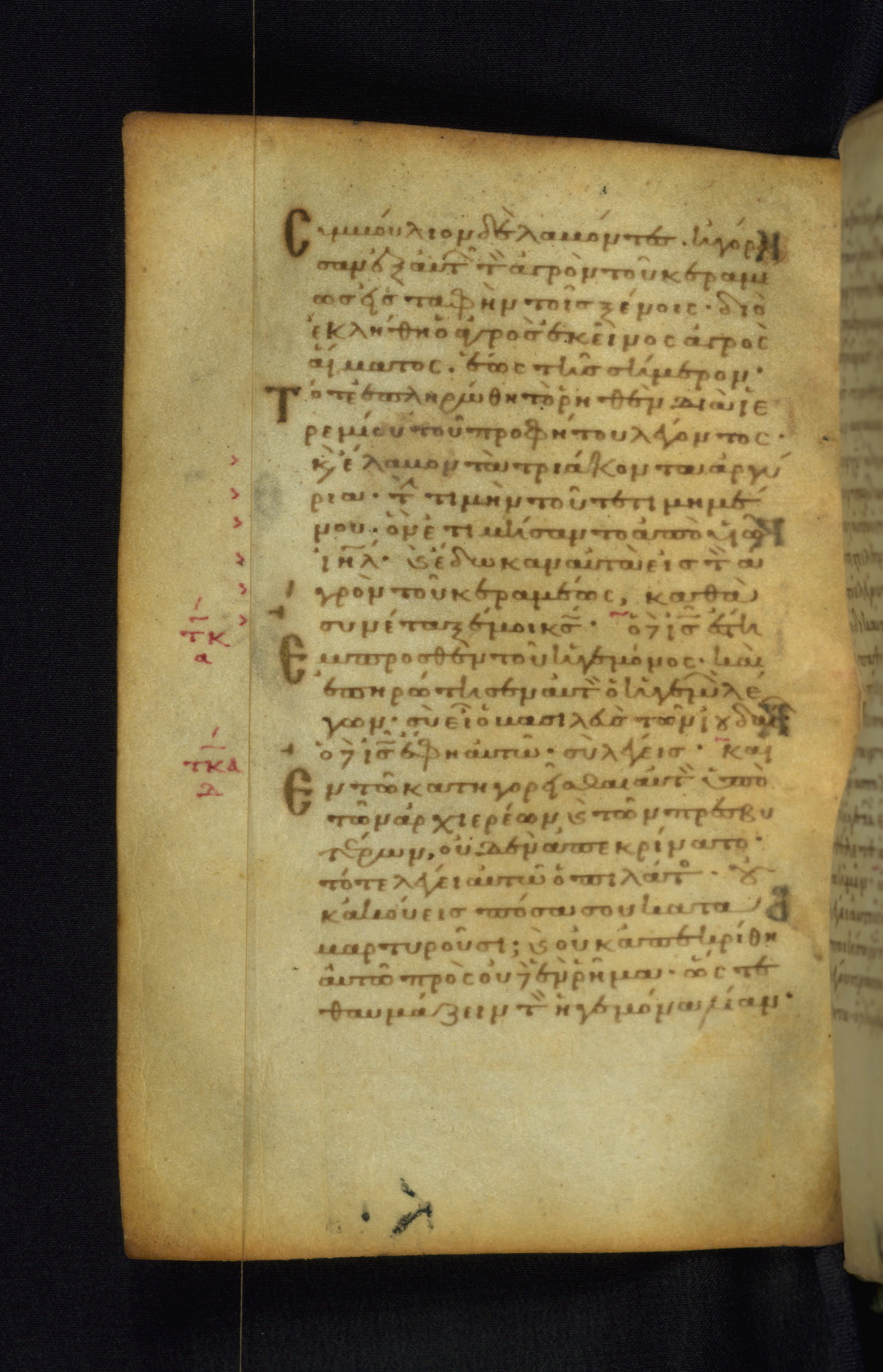 This Gospel book was likely created in the capital of the Byzantine Empire, Constantinople, in the eleventh century. The manuscript is remarkable on account of its exceptionally small size, as well as the high quality of its script and miniatures. Its extensive image cycle includes six full-page miniatures, four half-page miniatures, four historiated initials, and marginalia.