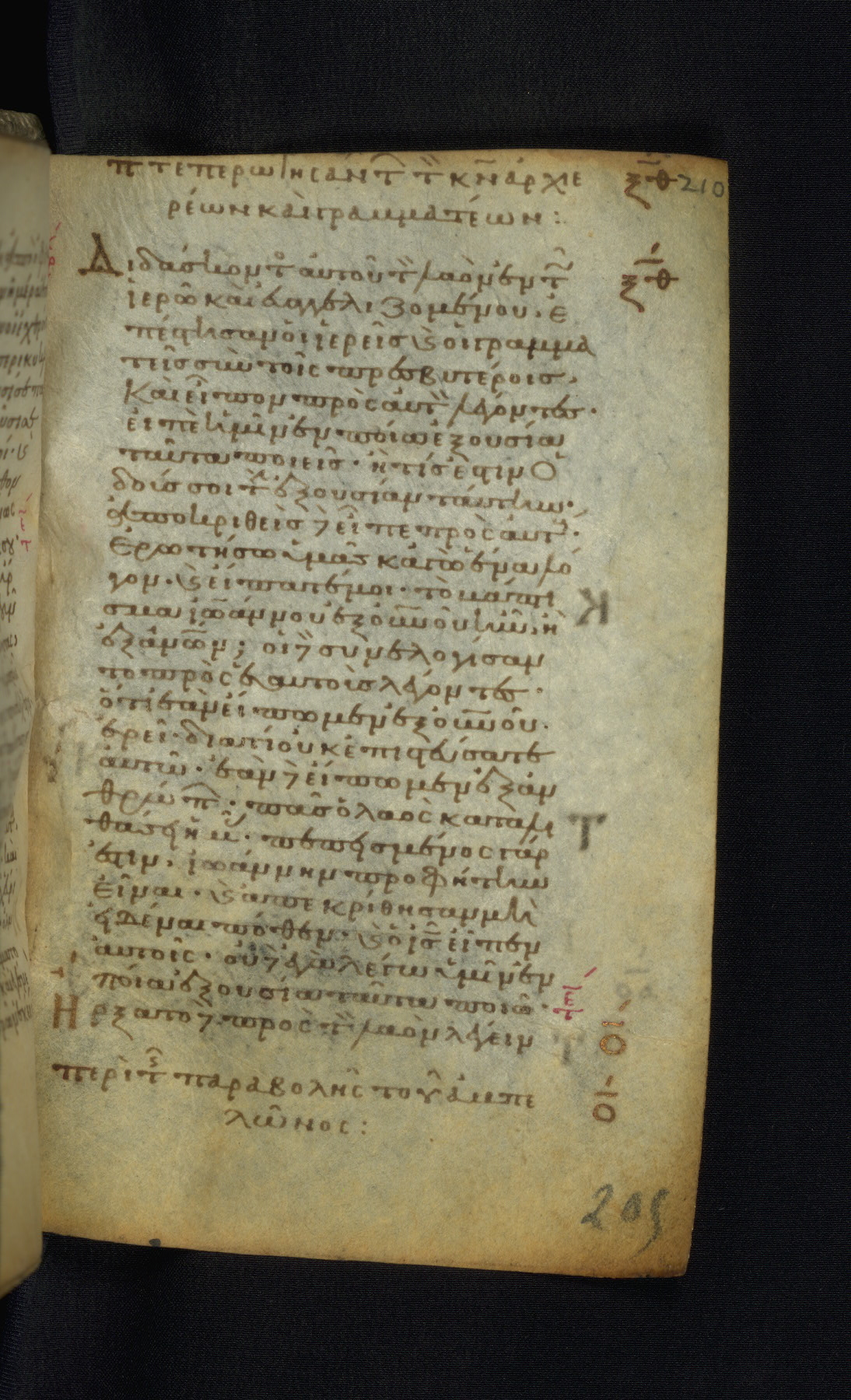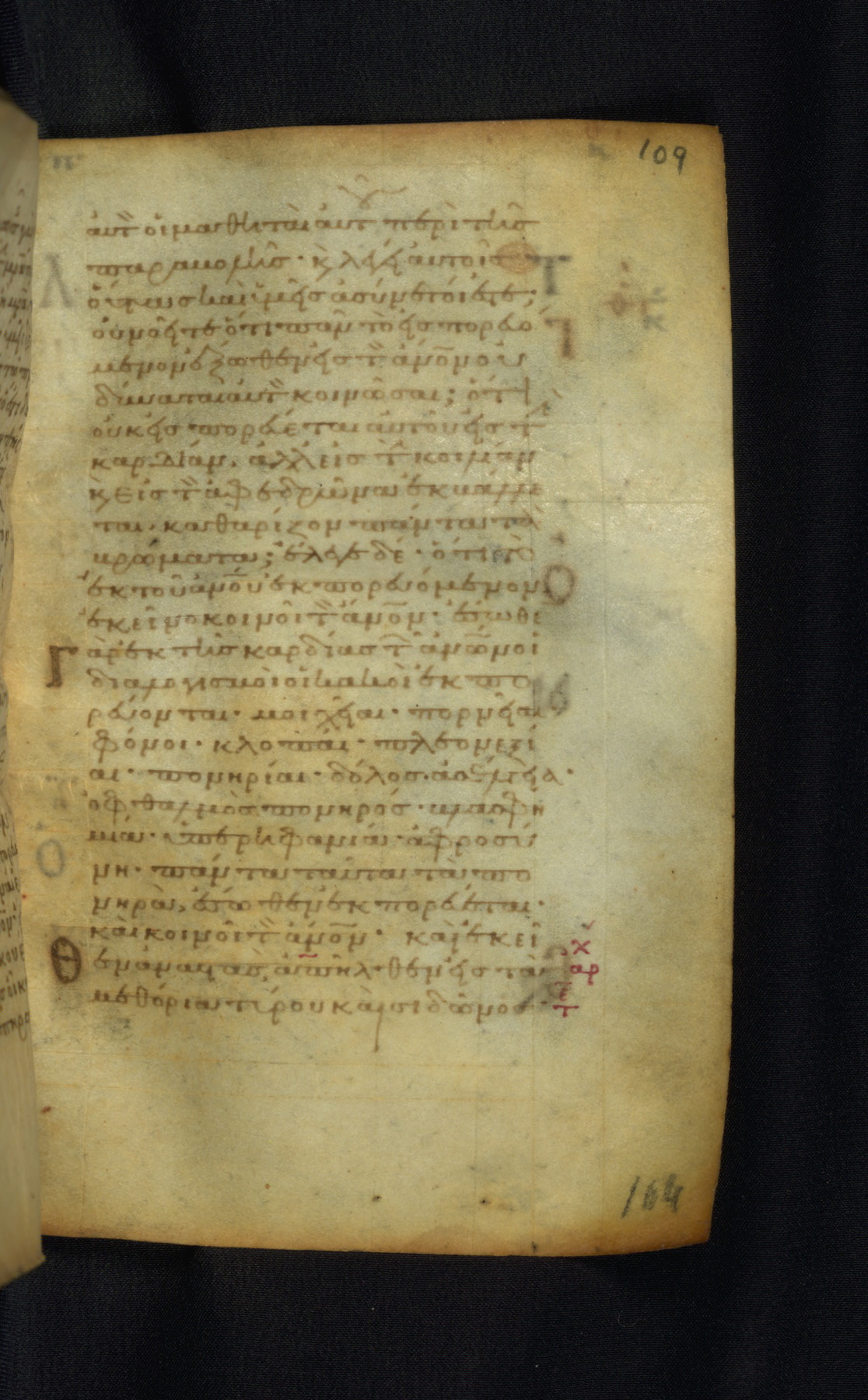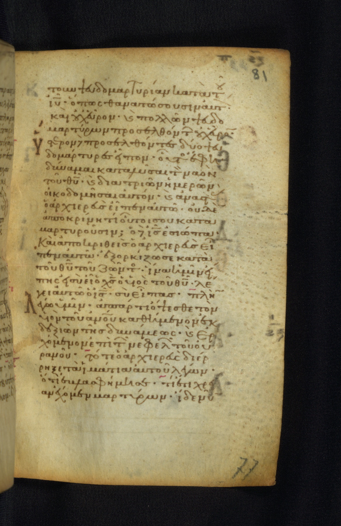 This Gospel book was likely created in the capital of the Byzantine Empire, Constantinople, in the eleventh century. The manuscript is remarkable on account of its exceptionally small size, as well as the high quality of its script and miniatures. Its extensive image cycle includes six full-page miniatures, four half-page miniatures, four historiated initials, and marginalia.