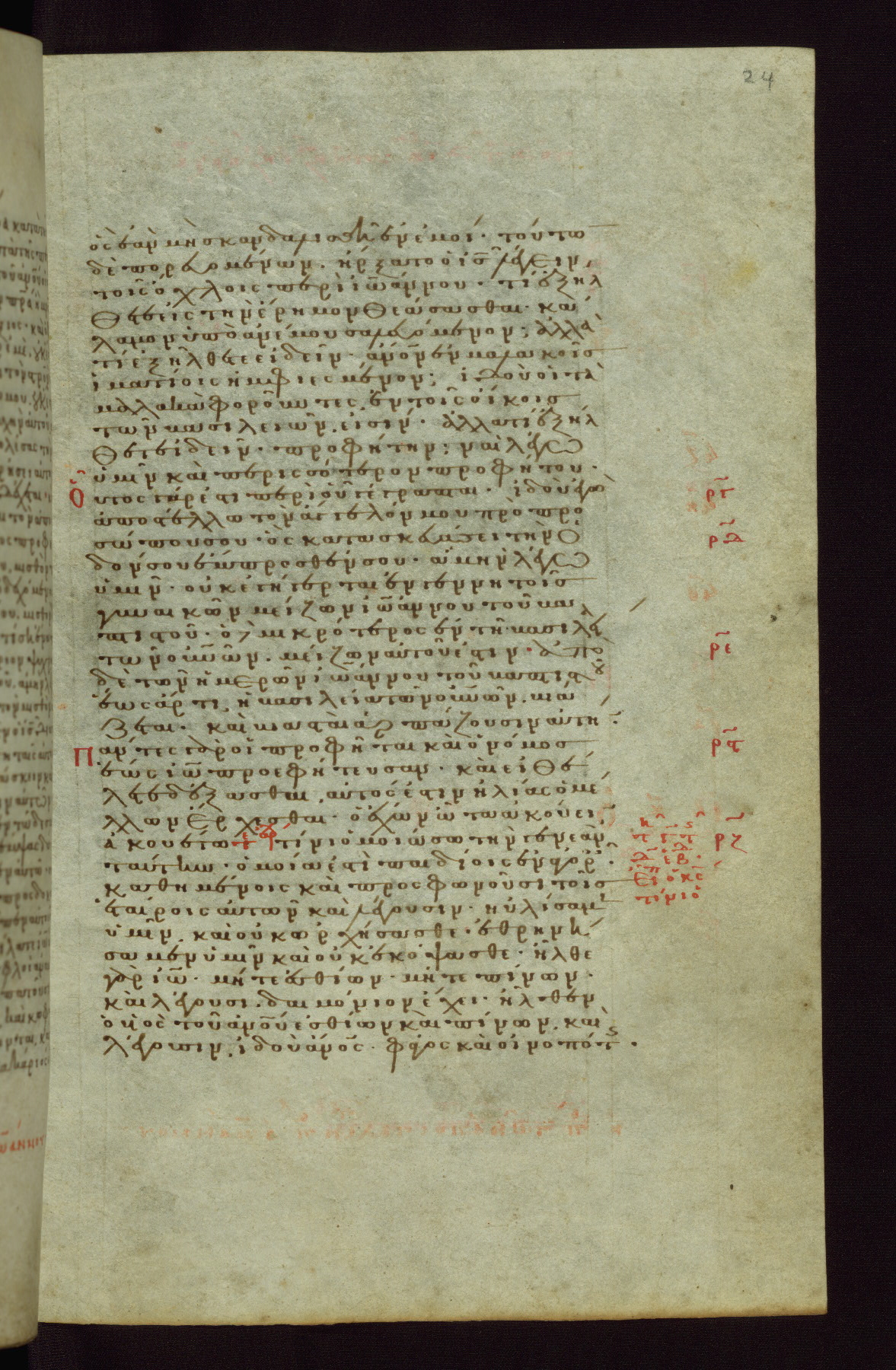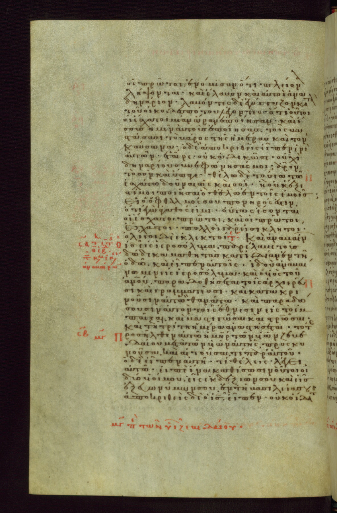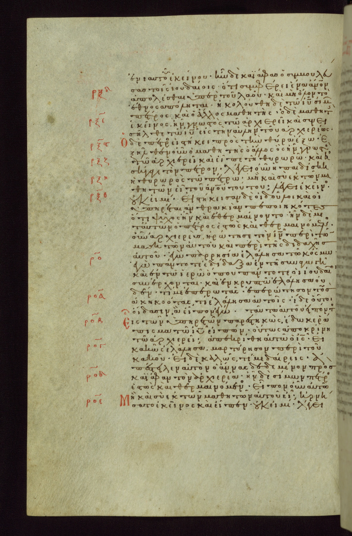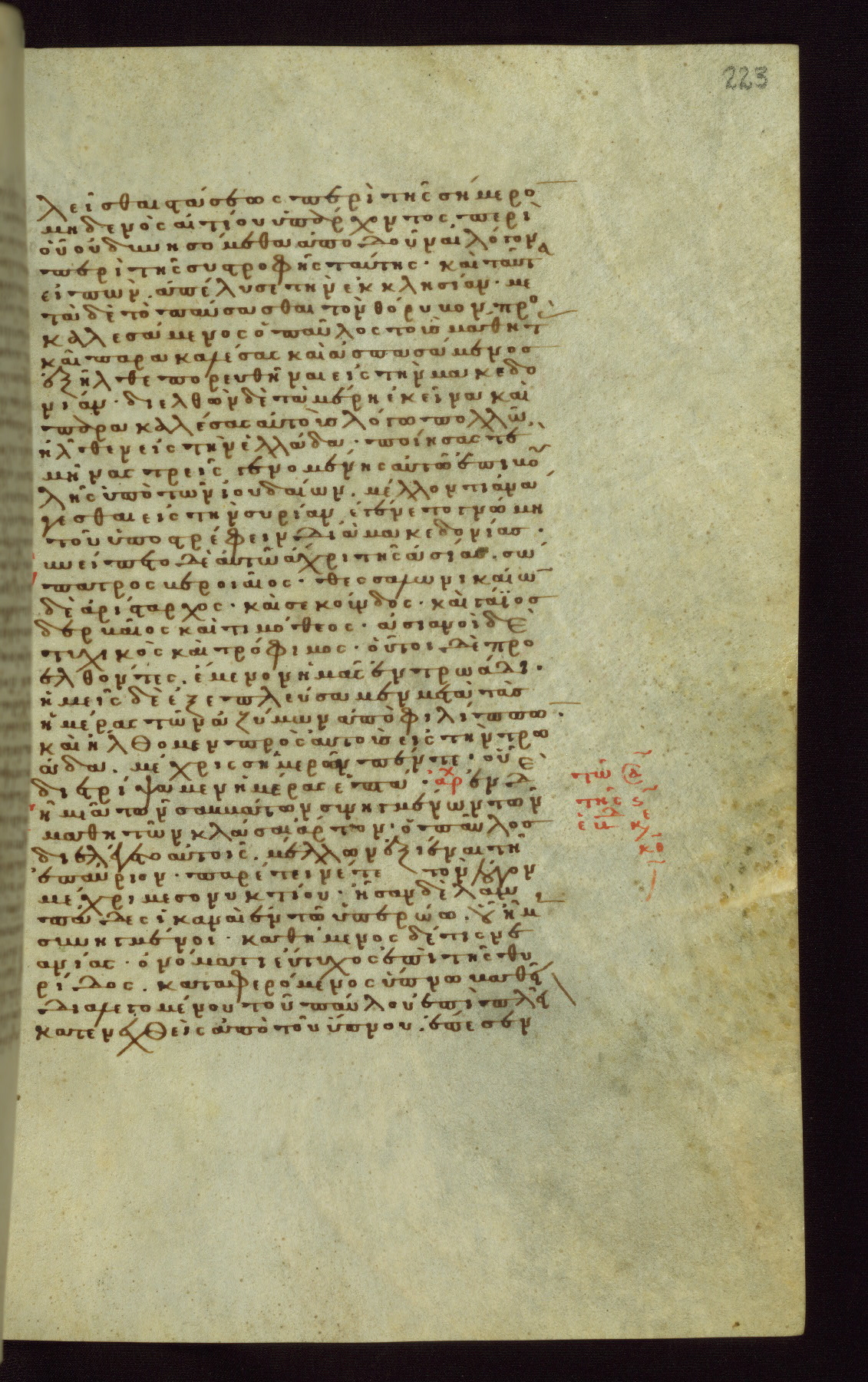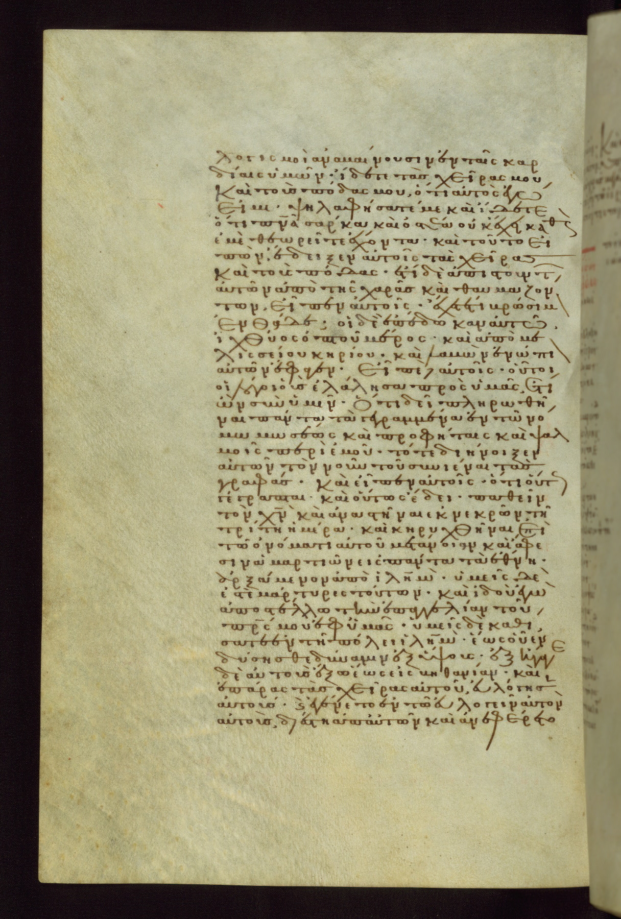 This small, densely written volume of the New Testament was evidently made for personal reading. It represents high-level manuscript production in the first decades of the late Byzantine period. ca. 1300. By 1628, it is known to have been in the Chilandari Monastery, or one of its dependencies, on Mount Athos.