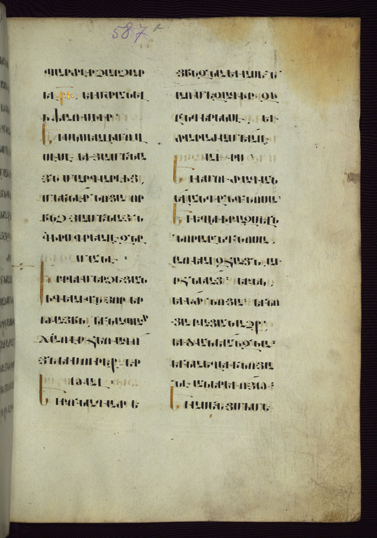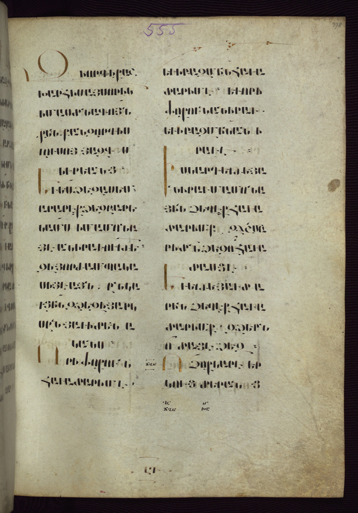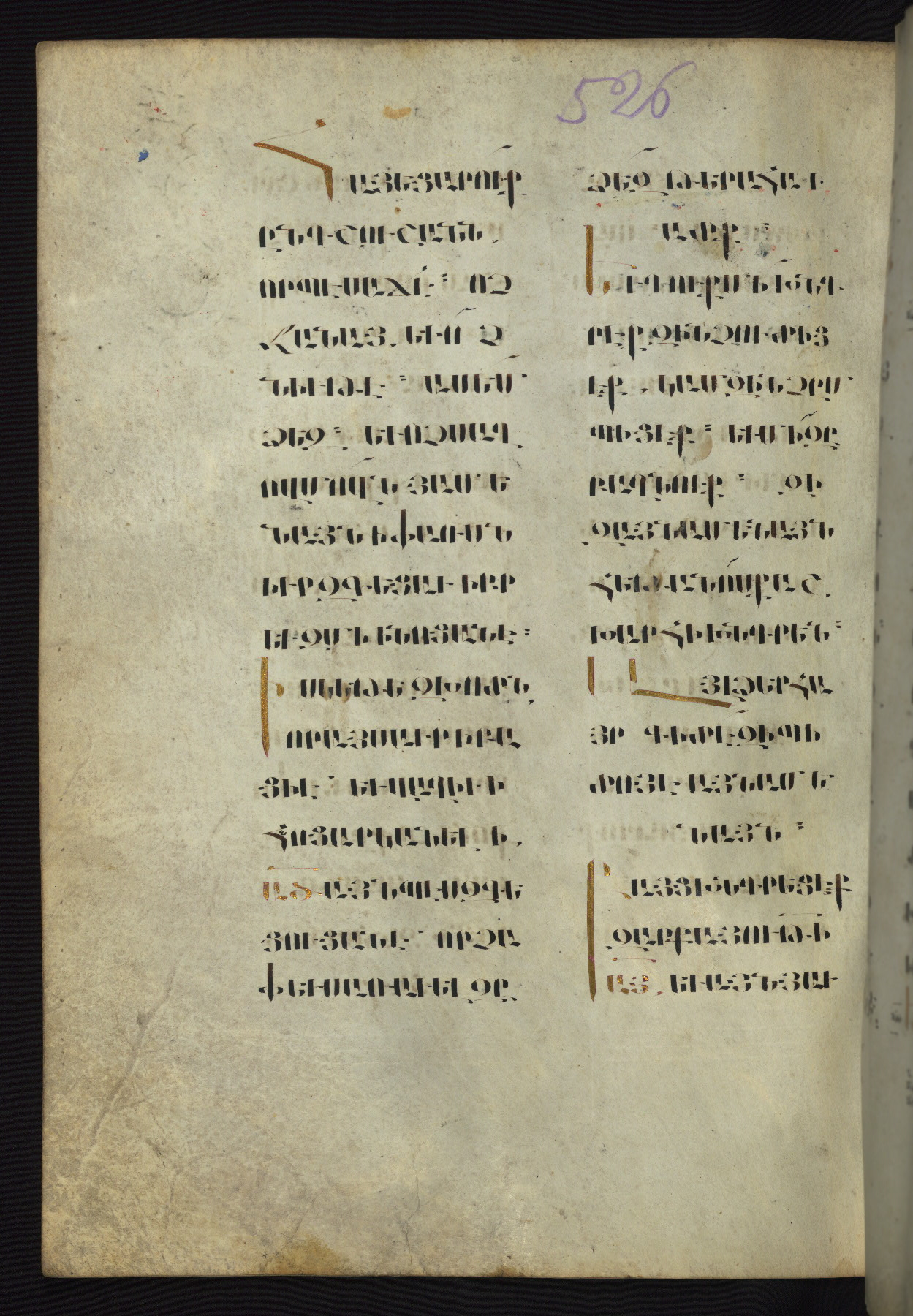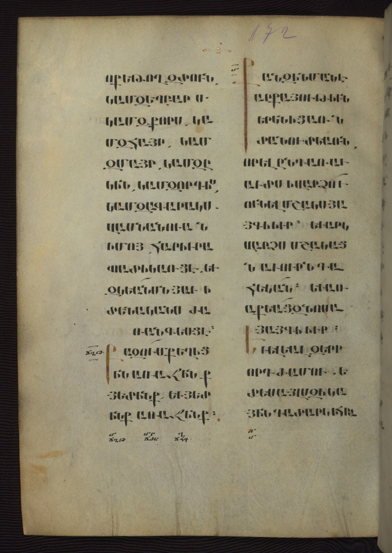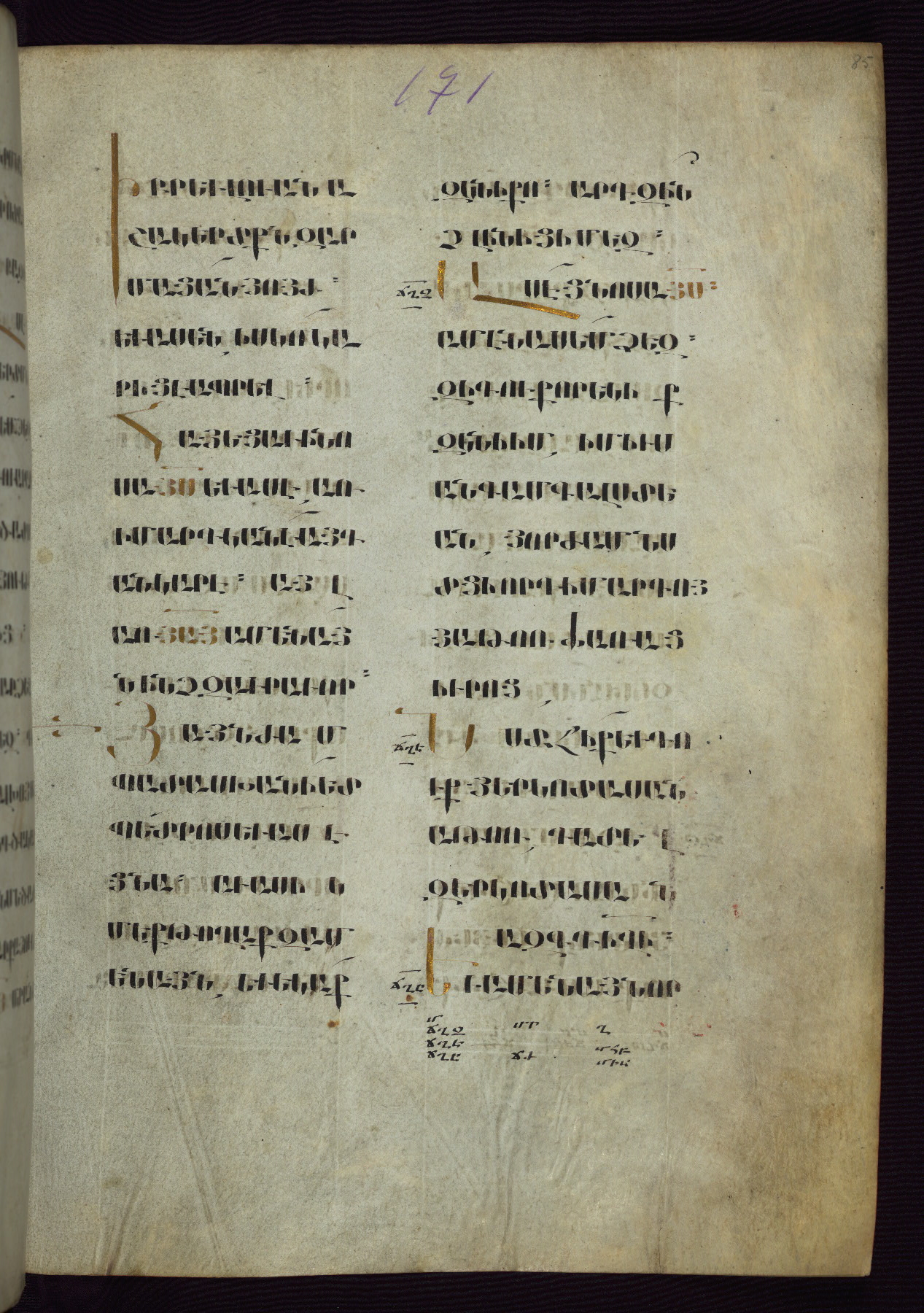 This manuscript was made in 1262 by T’oros Roslin, the celebrated illuminator who extended the iconographic repertoire by defining a narrative Gospel cycle beyond the traditional portraits of the Evangelists. This signed manuscript was created at the scriptorium of Hromkla, which became the leading artistic center of Armenian Cilicia under the rule of Catholicos Constantine I (1221-1267). As an extensive colophon starting on fol. 406v explains, T’oros created this manuscript under commission from the nephew of Constantine, a priest also named T’oros. It is one of seven known manuscripts bearing T’oros Roslin’s signature, and it is the most sumptuous of them all, with 15 miniatures and 67 smaller illustrations. The style of the images suggests that T’oros had several assistants helping with the illustrations, though the overall quality remains extremely high. The manuscript was long cherished within the Armenian church. Even in the seventeenth century, its illumination served as a model for Armenian scribes, particularly Bargham and his son Mik’ayel; see Jerusalem, Armenian Patriarchate, no. 3438 and Washington DC, Freer Gallery, Ms. 36.15; in the latter manuscript, Mik’ayel explicitly refers to “the excellent scribe T’oros, surnamed Roslin.”