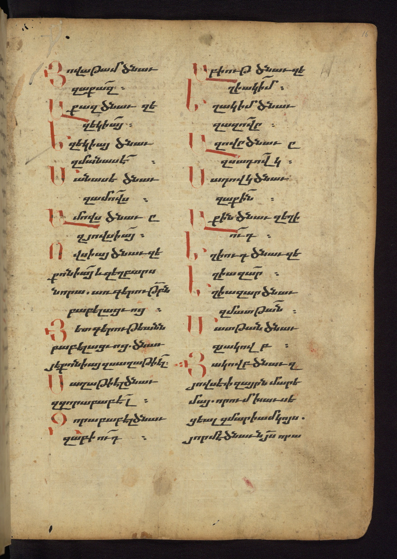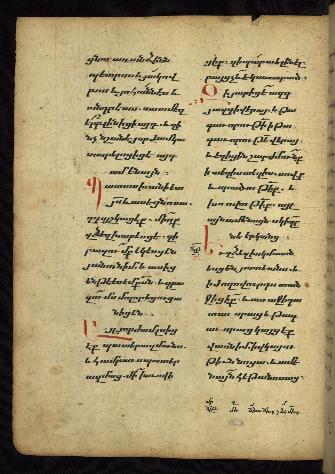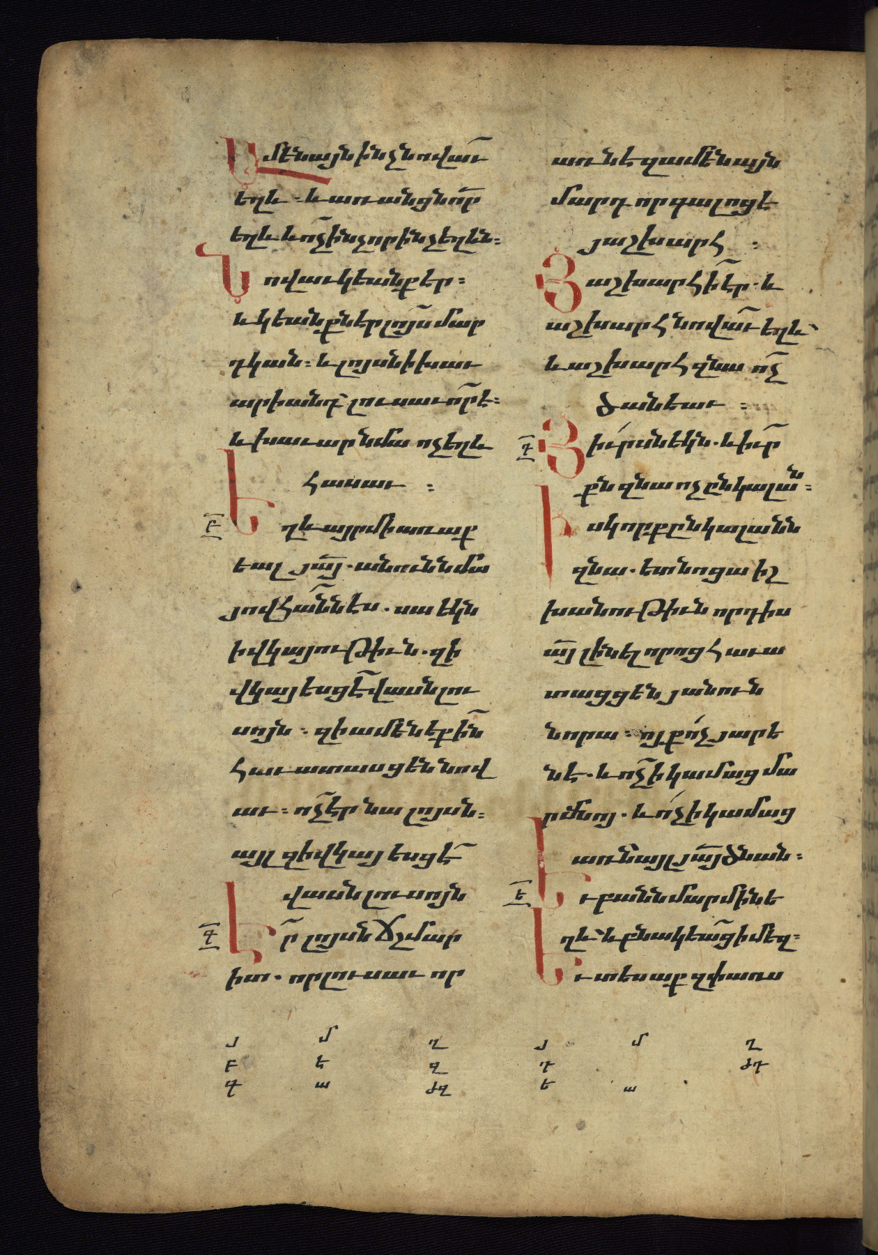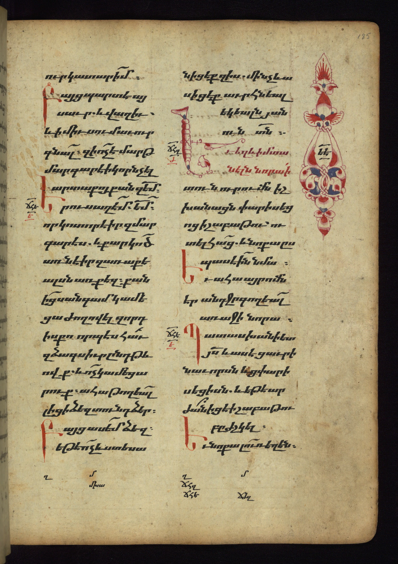 This Gospels manuscript was written in 937 of the Armenian era [1488 CE] in the province of Ekełeac' by the priest Łazar at the monastery of Surb Awgsend (St. Auxentius). Though the fifteenth-century manuscript was not a terribly costly production, it later came to be housed in a magnificent binding with large silver plaques showing the Presentation of the Christ Child in the Temple on the front and the Ascension on the back. This silver binding, which can be assigned to the seventeenth or early eighteenth century, was likely produced in Kayseri (Turkey). The manuscript's fifteenth-century Evangelist portraits show signs of Mongolian artistic influence, stemming from the time when Mongols had conquered the province. For a manuscript of similar style, see the Gospels in Jerusalem, no. 298, copied by Maghak’ia in 1497. The Walters' Silver Gospels was used over a long period by a succession of owners. Information about its history is given in its colophons and ownership inscriptions on the codex's final folios. One note indicates that the book was rebound in 1626, and offered to the church of Surb Astuacacin (Holy Theotokos) in memory of Caruk, Kirakos, and Girigor (fol. 280r). The last date given is the Armenian year 1161 (1712 CE), which may be when the manuscript was rebound.