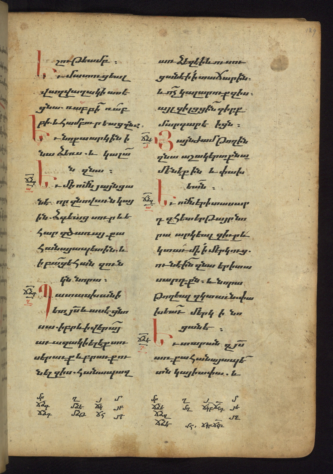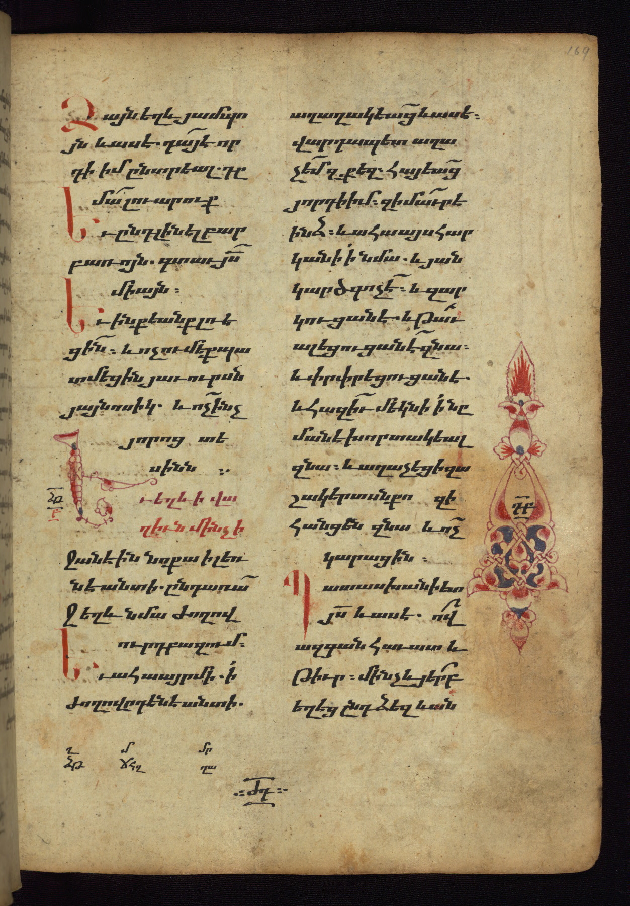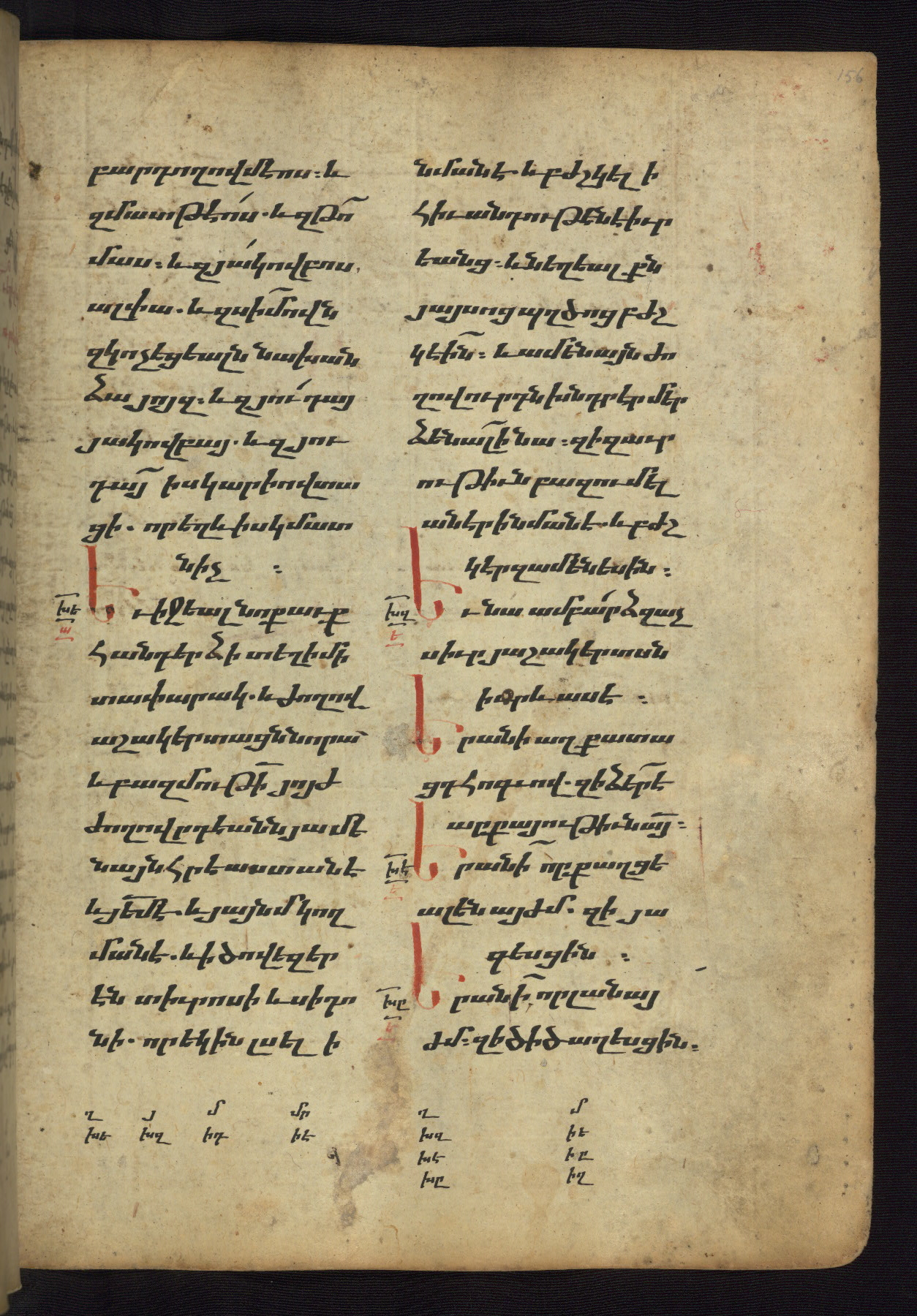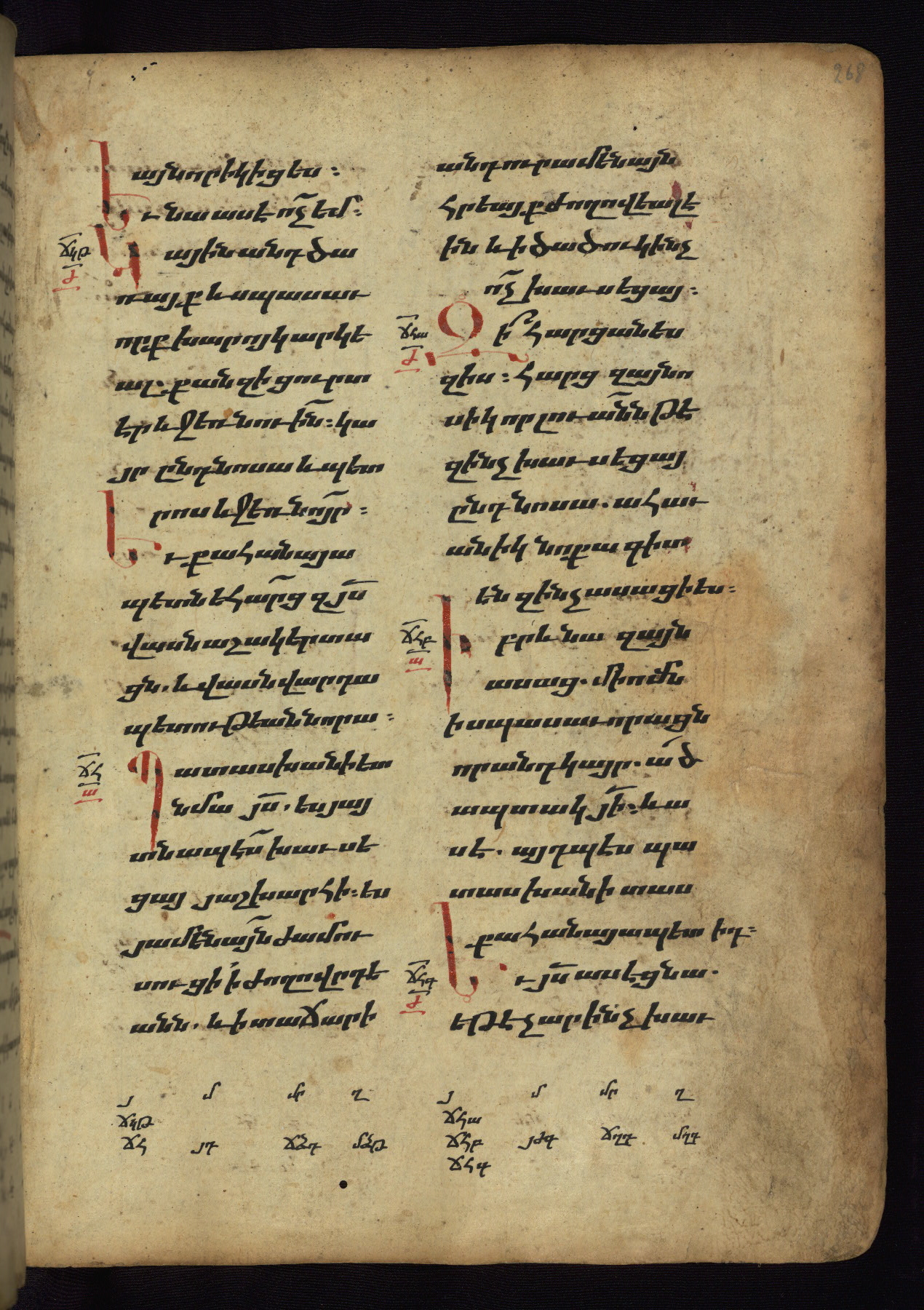 This Gospels manuscript was written in 937 of the Armenian era [1488 CE] in the province of Ekełeac' by the priest Łazar at the monastery of Surb Awgsend (St. Auxentius). Though the fifteenth-century manuscript was not a terribly costly production, it later came to be housed in a magnificent binding with large silver plaques showing the Presentation of the Christ Child in the Temple on the front and the Ascension on the back. This silver binding, which can be assigned to the seventeenth or early eighteenth century, was likely produced in Kayseri (Turkey). The manuscript's fifteenth-century Evangelist portraits show signs of Mongolian artistic influence, stemming from the time when Mongols had conquered the province. For a manuscript of similar style, see the Gospels in Jerusalem, no. 298, copied by Maghak’ia in 1497. The Walters' Silver Gospels was used over a long period by a succession of owners. Information about its history is given in its colophons and ownership inscriptions on the codex's final folios. One note indicates that the book was rebound in 1626, and offered to the church of Surb Astuacacin (Holy Theotokos) in memory of Caruk, Kirakos, and Girigor (fol. 280r). The last date given is the Armenian year 1161 (1712 CE), which may be when the manuscript was rebound.