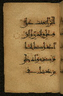 This illuminated fragment of the Qur'an contains chapter 25 (Sūrat al-furqān), verses 21-32 and 39-78; chapter 26 (Sūrat al-shuʿarāʾ); and chapter 27 (Sūrat al-naml), up to verse 40. It probably dates to the late fifth century AH / eleventh CE or early sixth century AH / twelfth CE. The text is written in the New Abbasid (broken cursive) style in black ink and is vocalized with red dots and blue circles, the latter for sukūn. Single verses are separated by illuminated rosettes, and groups of five verses are indicated by the letter hāʾ in the form of a teardrop in the margins. Marginal medallions are also used for larger verse groups. The black leather binding is modern.