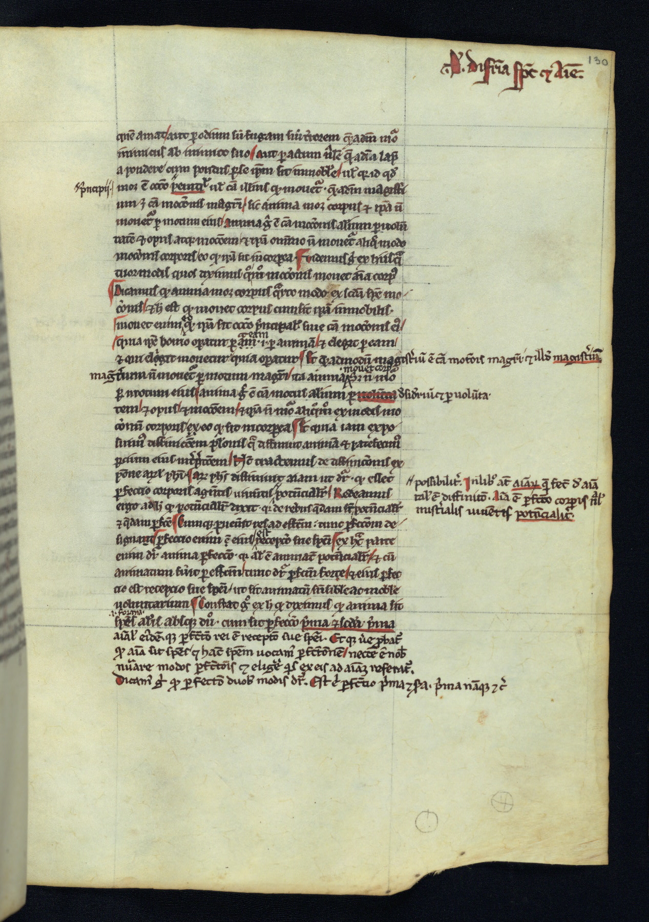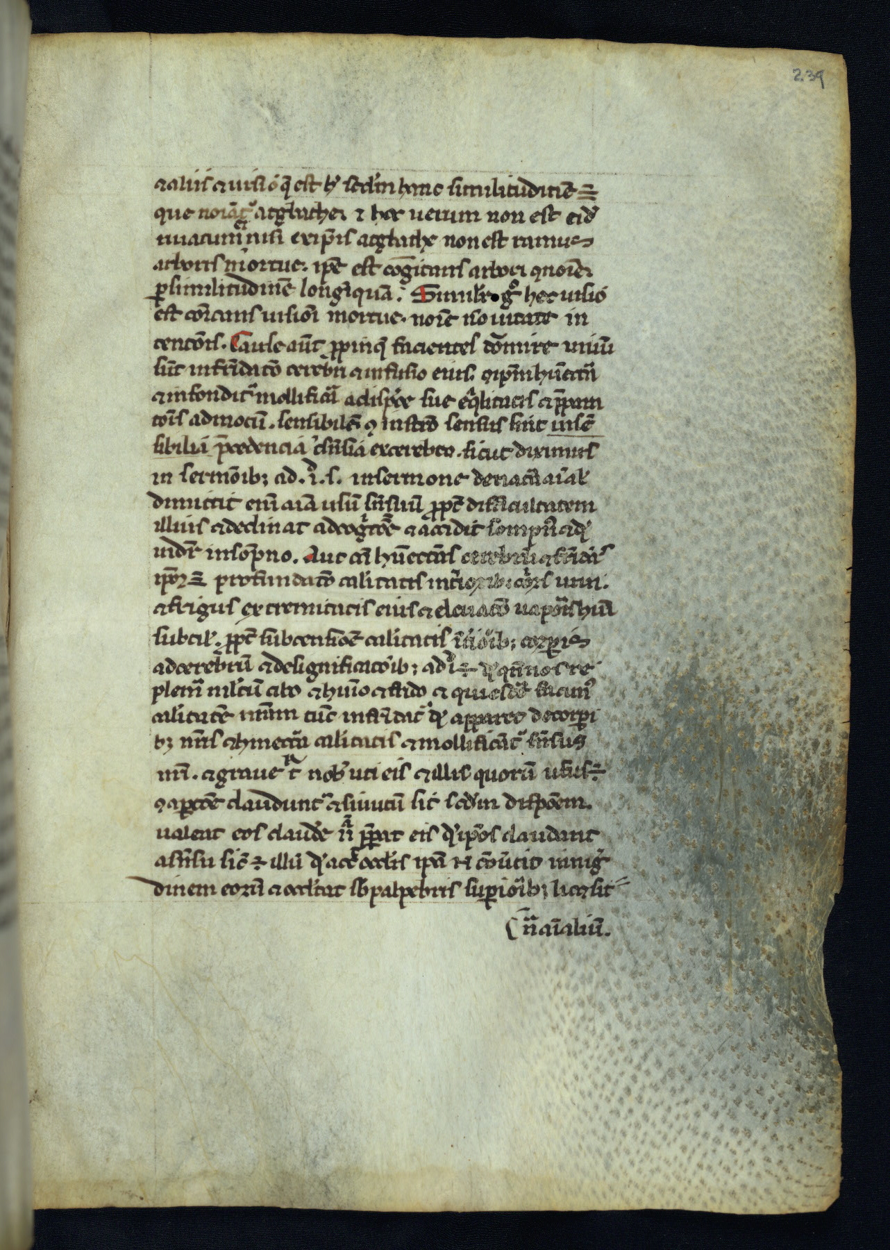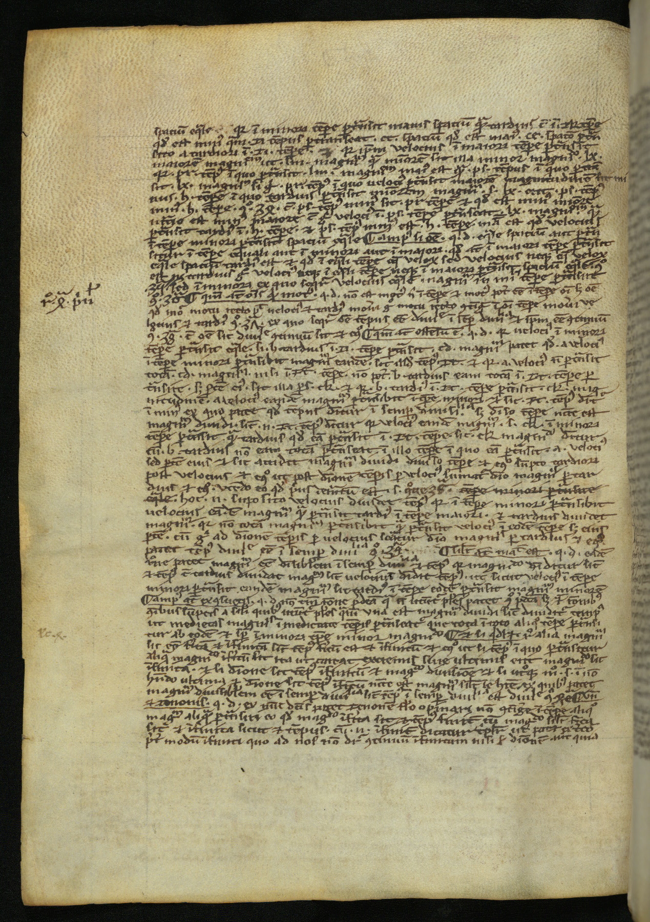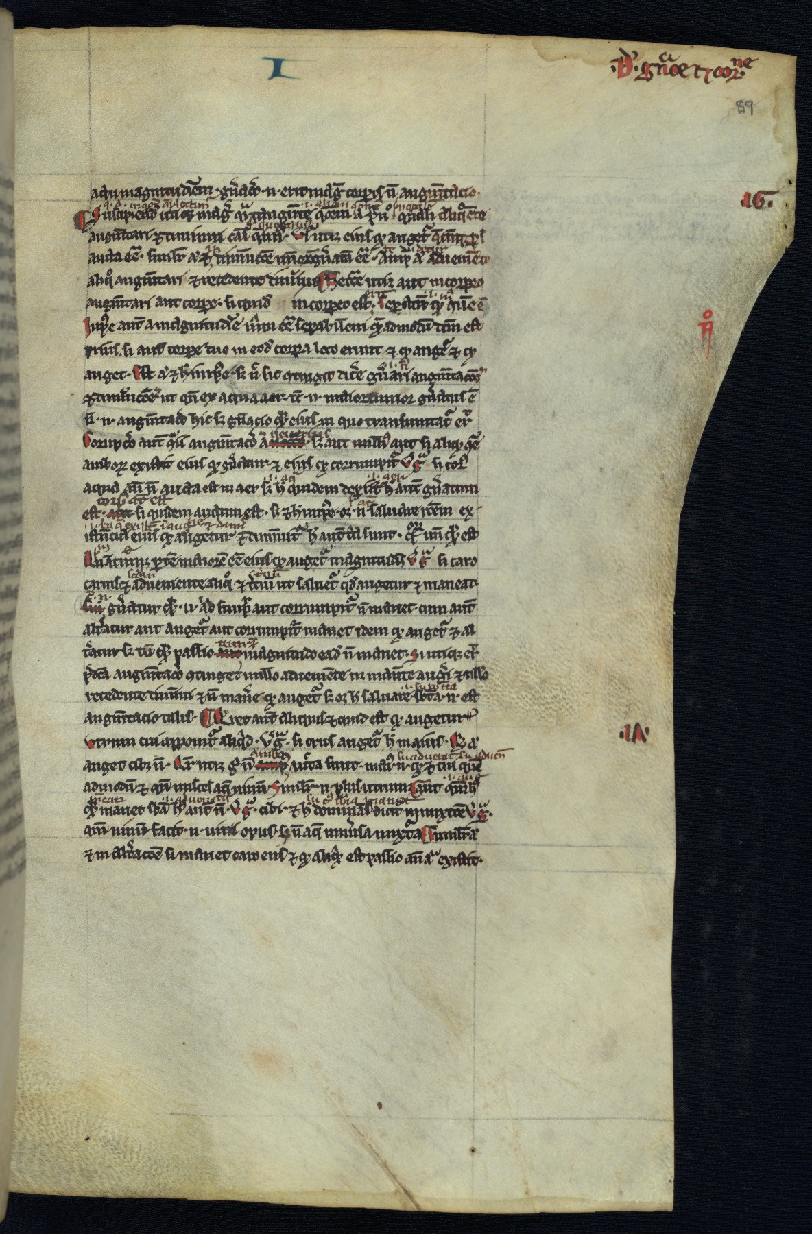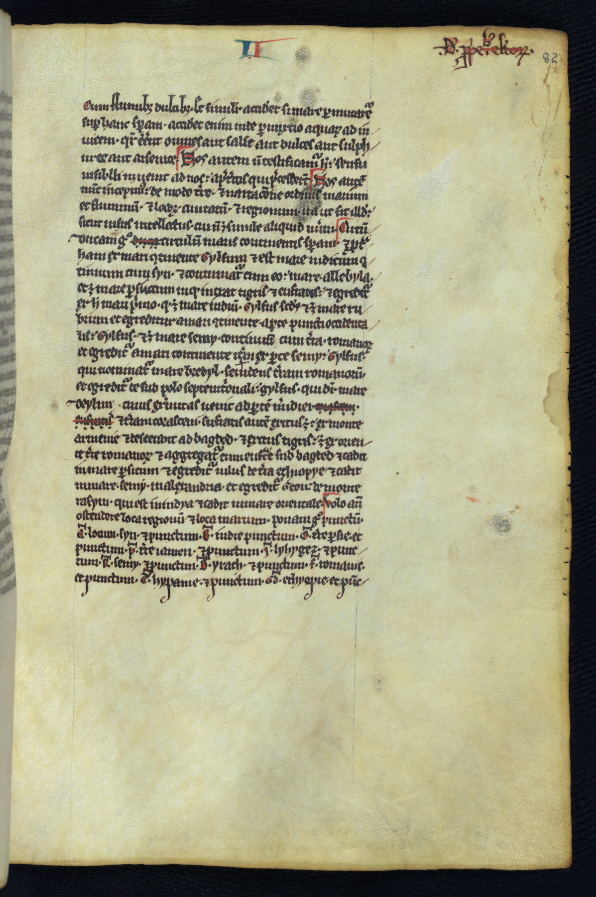 This thirteenth-century scholar’s text appears to be a composite of various smaller booklets, written in a variety of different places and times; the script, layout, and even parchment type change drastically from one section to the next. It contains Latin translations of several scientific works of Aristotle, along with other works by a variety of authors. Those additional authors, who are primarily medieval and represent a wide range of scholars who engaged with Aristotle across both time and place, include Frederick II, Holy Roman Emperor (1194-1250), Alfred of Sareshel (also known as Alfredus Anglicus, a 13th century English scholar), Henricus Aristippus (fl. 1156-1162), Qusṭā ibn Lūqā (ca. 820-912, known as Costa ben Luca), Nicolaus of Damascus (b. 64 BCE), Joannes Hispalensis (12th century), William of Moerbeke (ca. 1215-1286), Averroës (1126-1198), Kindī (d. ca. 873, and name written in text as ysaac filii iacob alchindi), and Rāzī, Abū Bakr Muḥammad ibn Zakarīyā (865?-925?). The majority of the texts, and the abundance of marginal notes and glosses that accompany them, were probably produced in England, France, or Spain, but the last folios and many of the notes seem to be of Italian origin, suggesting a text that was well traveled in addition to being well read.